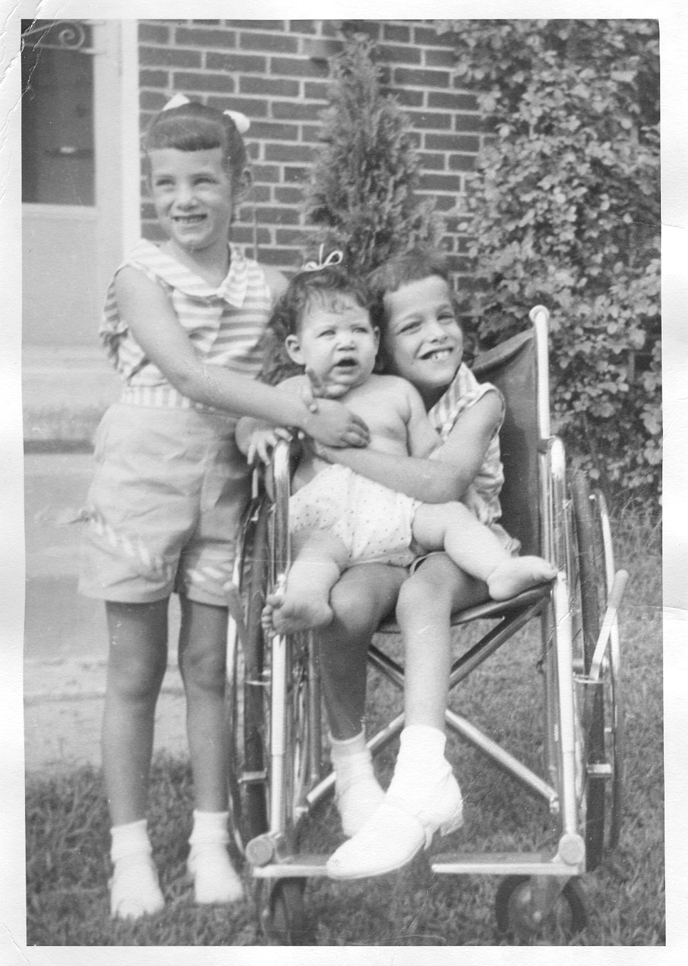 I am posing with my cousin Ellen and Nancy. I'm the one that forgot to wear a shirt. The bow in the hair is cool!